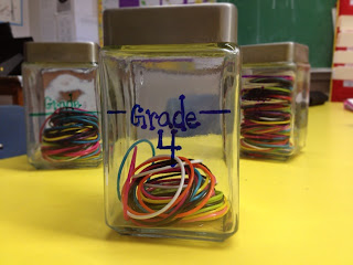 Believe me when I say, this has been a miracle worker for me.  Even my toughest kids LOVE earning bracelets.  It becomes a quick (healthy) competition to see who can get the most bracelets. And all I have to do to get my students back on track is mutter these ten little words "should I go take some bracelets out of the jar?" and they snap right back into place.